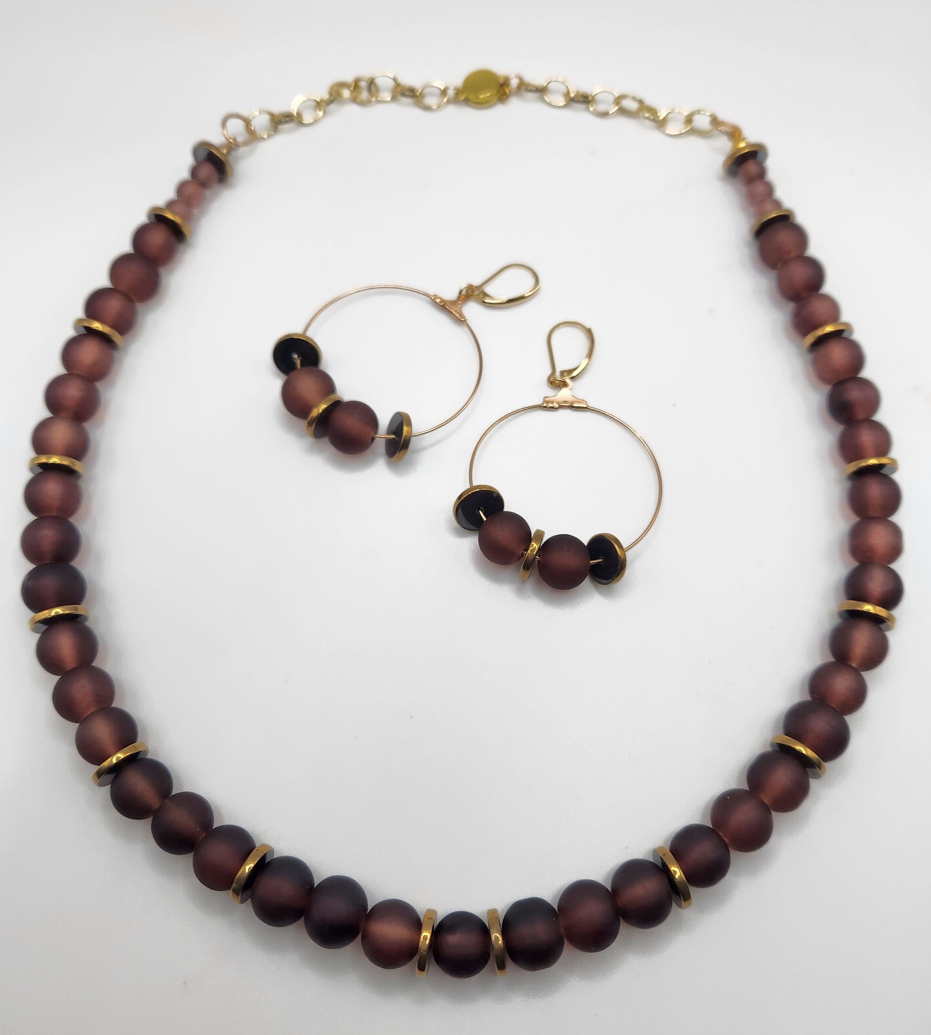 Elevate your jewelry collection with this sophisticated chocolate-hued set, designed for the modern woman who appreciates understated elegance. Featuring a graceful 23-inch necklace paired with coordinating hoop earrings, this ensemble transitions seamlessly across your lifestyle—from boardroom meetings to intimate dinners and everything in between. The warm, luxurious tones enhance any skin tone while adding depth and refinement to your personal style. A versatile investment piece that speaks to timeless beauty and refined taste.