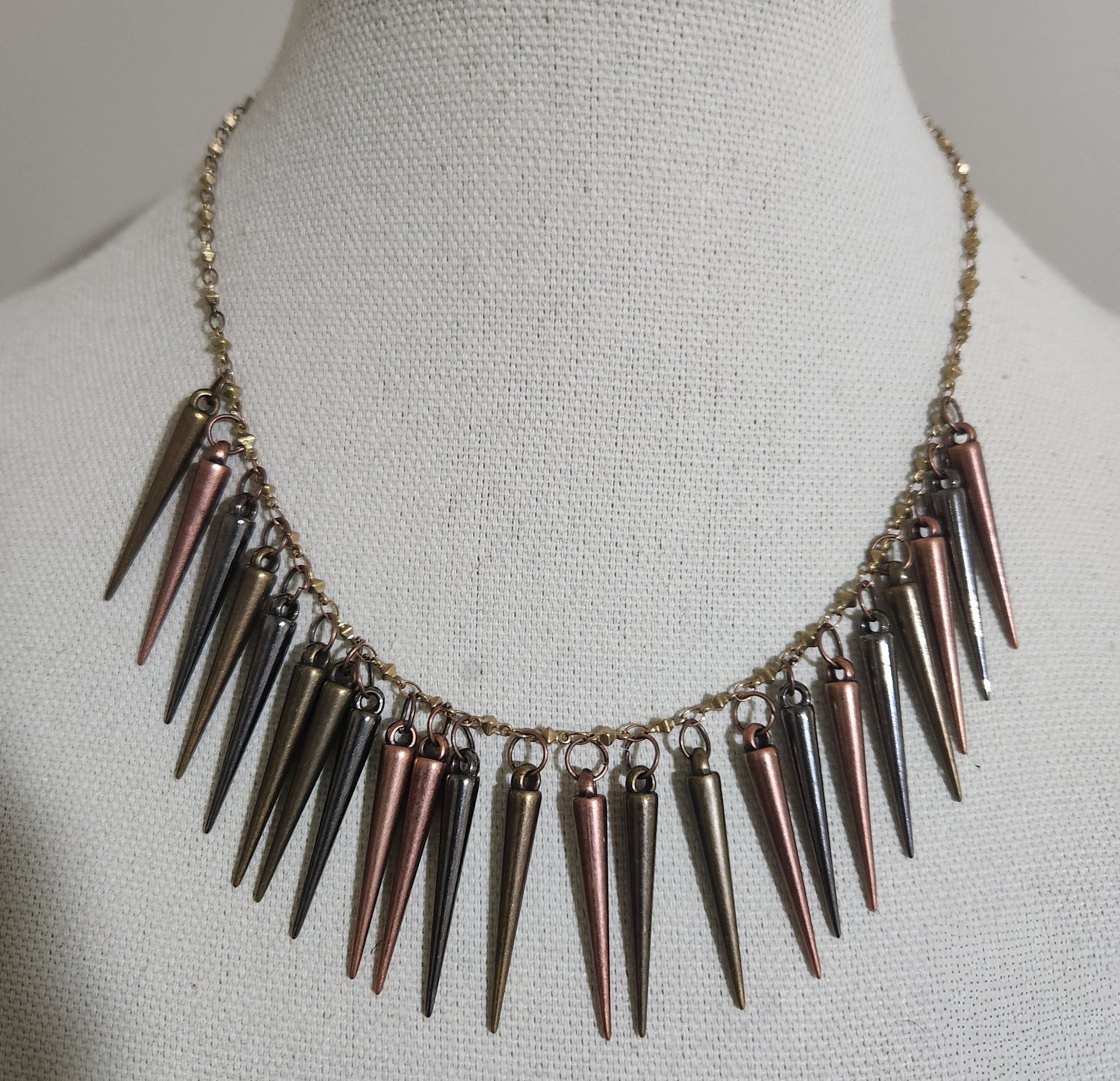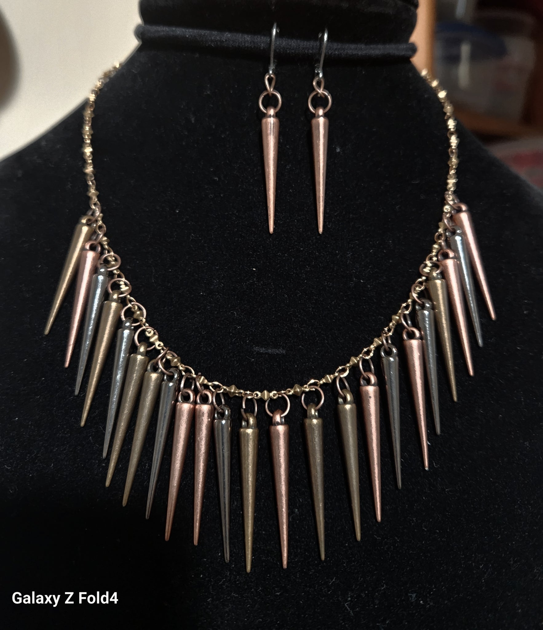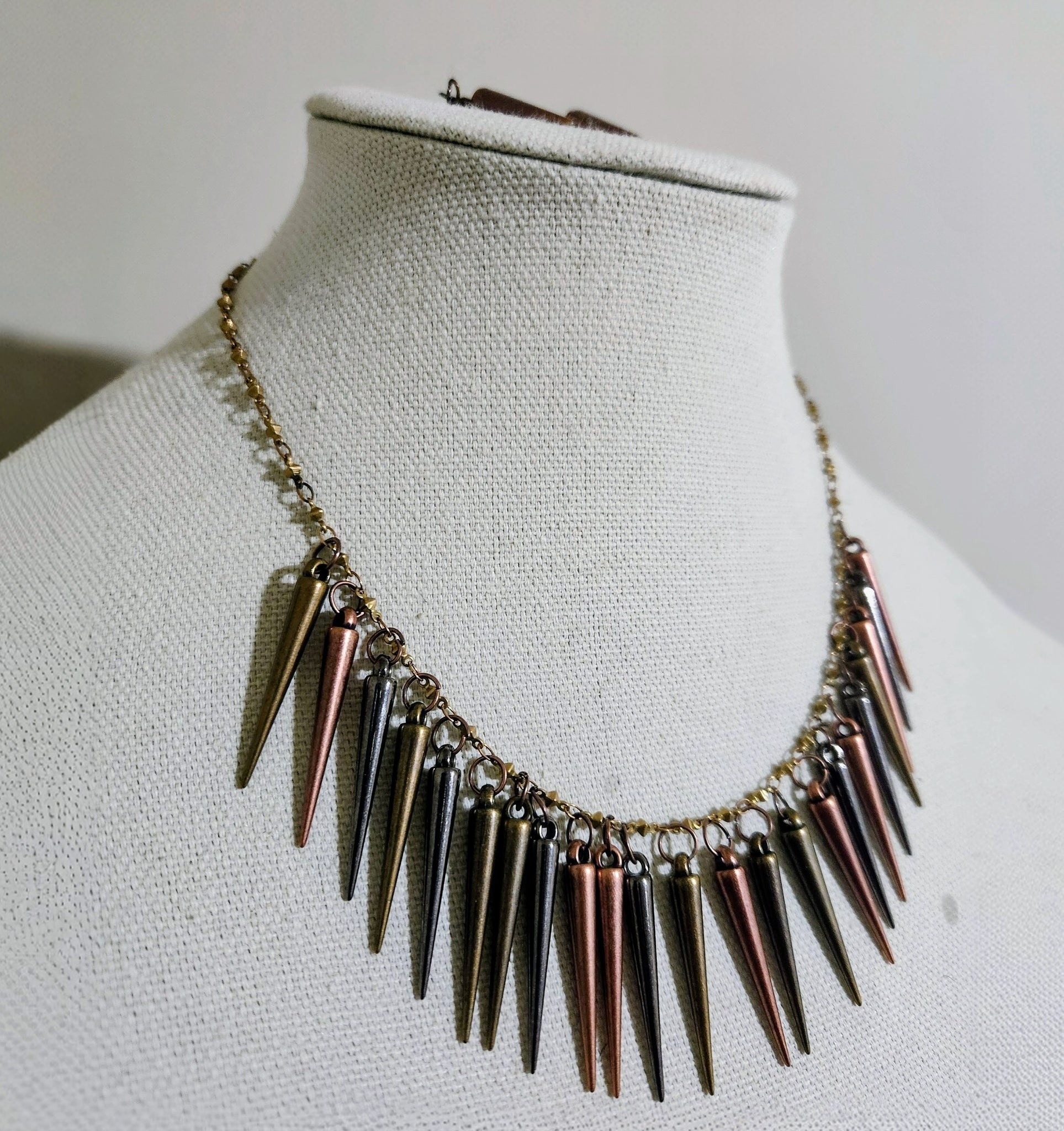 Elevate your style with Pointed Confidence, a unique and sophisticated set featuring pointed acrylic beads and a statement brass chain. This lightweight 17 inch necklace and 2 inch earrings will add the perfect touch to your ensemble, exuding confidence and charm. Indulge in luxury with this exclusive piece.